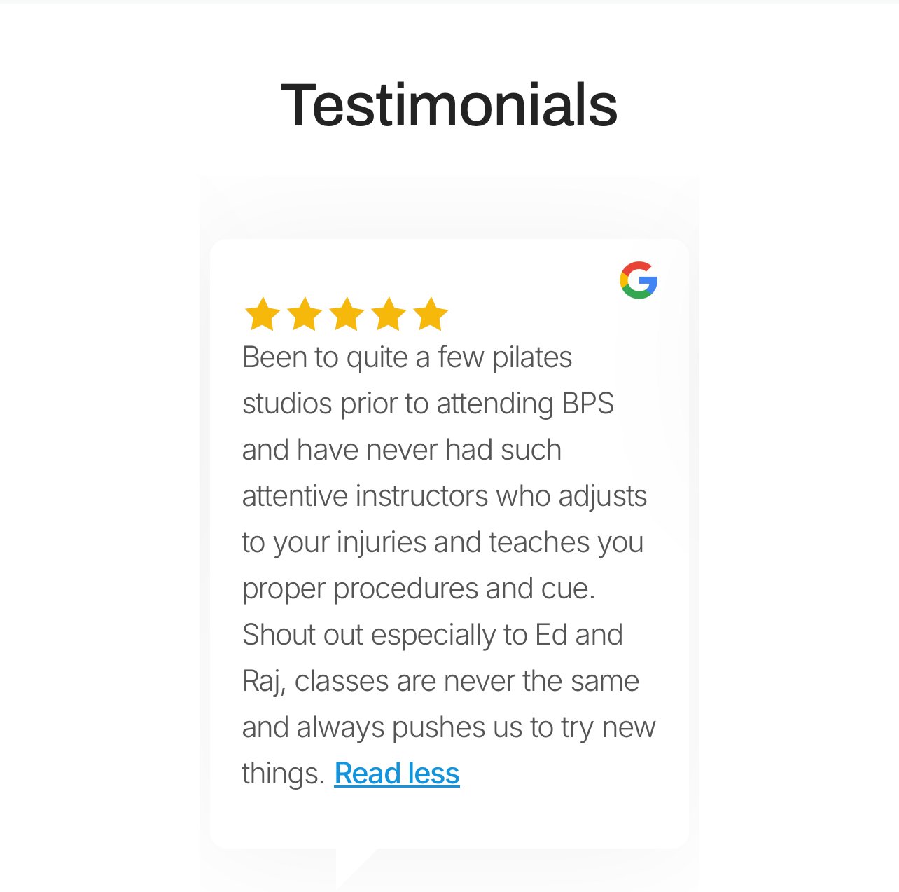 ‘”I have been a regular at BPS for almost a year now. It’s always a positive and friendly vibe and the smaller classes allow for the trainers to monitor everyone and ensure all movements are safely performed. Ed’s classes are my favourite. He puts in extra efforts to keep us challanged mentally and physically with new moves while still ensuring we are safe and have correct technique. I can feel myself getting stronger and can see the changes in my body too! Would highly recommend”